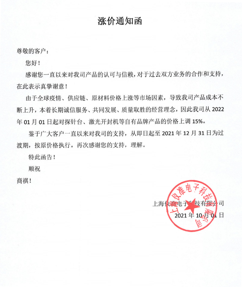 漲價(jià)通知函
